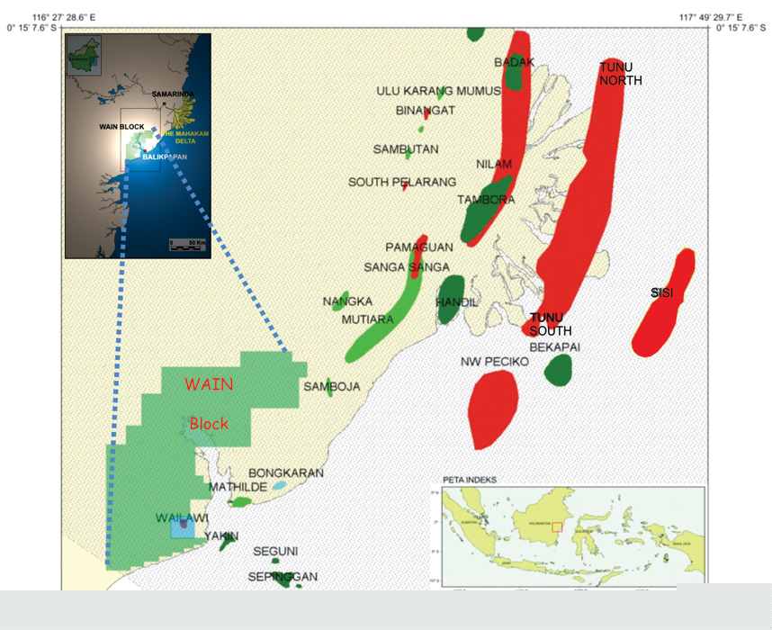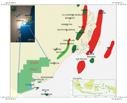 Wain Block PSC geologically is located on Kutai basin which is one of prolific hydrocarbon producing basins in Indonesia. Historically, until 2005 five exploration wells had been drilled by Huffco / Virginia Oil Company (Vico) in this block. PT. Pandawa Prima Lestari drilled one exploration well, as part of its firm commitment.
